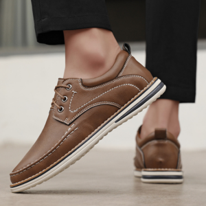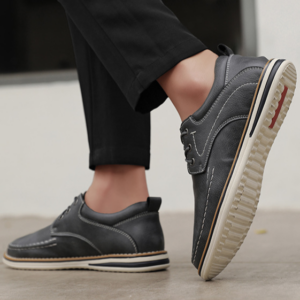 Conçues pour être vos chaussures quotidiennes les plus confortables, ces derbies à bout mocassin sont fabriquées en cuir lisse, avec un col rembourré et une doublure douce pour un confort durable. Les coutures relevées du bout et les surpiqûres contrastantes mettent en valeur la silhouette, tandis que la semelle de style sneaker assure légèreté et stabilité à chaque pas.