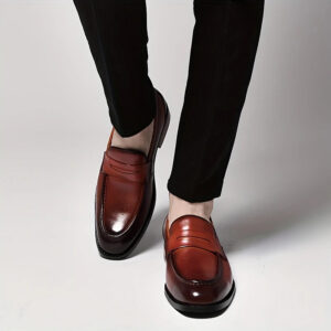 Confectionnés en cuir italien véritable, ces mocassins se distinguent par une finition riche et brillante qui capte la lumière à chaque pas. Leur silhouette élégante et leur semelle intérieure profilée enveloppent vos pieds dans un confort optimal tout au long de la journée.