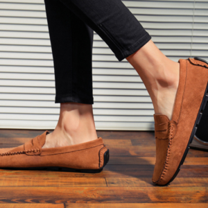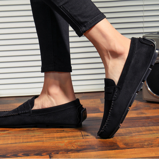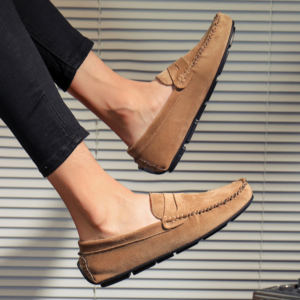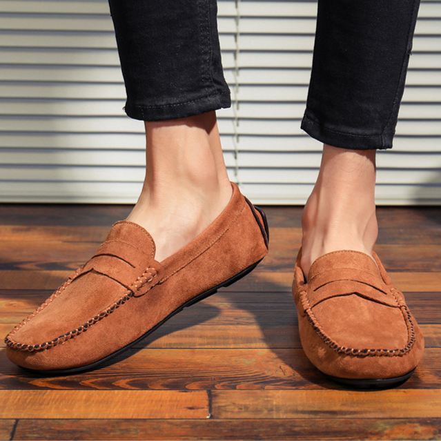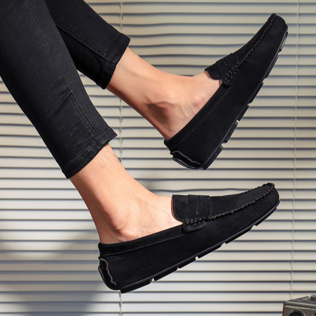 Confectionnés dans un daim de qualité supérieure, ces mocassins à lanière allient confort et polyvalence grâce à une semelle intérieure rembourrée et une semelle souple. Le talon renforcé type “driving” offre une stabilité accrue, que vous arpentiez les rues animées ou que vous soyez au volant.