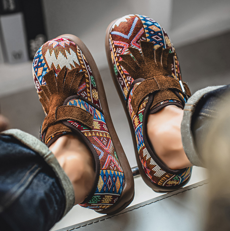 Conçues pour ceux qui avancent dans la vie avec une élégance discrète, ces chaussures sont les plus légères, confortables et naturelles de toutes ! Texture tissée, franges en daim et confort facile se combinent pour créer une chaussure parfaite pour les aventures détendues, que ce soit en ville ou au cœur de la nature.