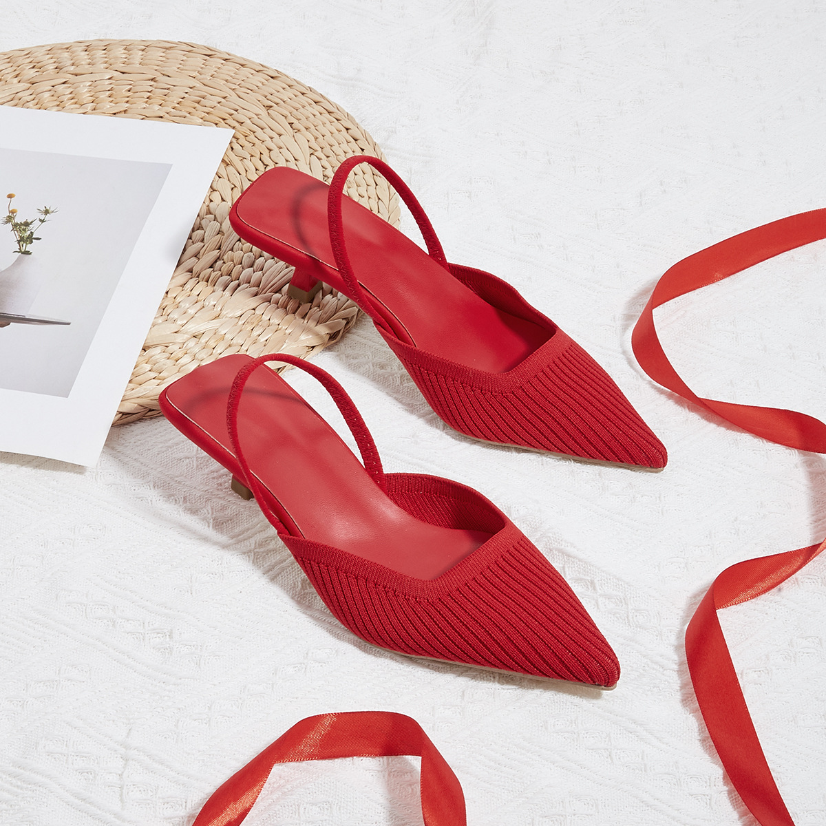 Balancing style and comfort, these slingback heels feature a pointed toe and slingback strap that create a sleek silhouette, while the soft knit upper and low heel ensure lasting comfort, even through long days on your feet.