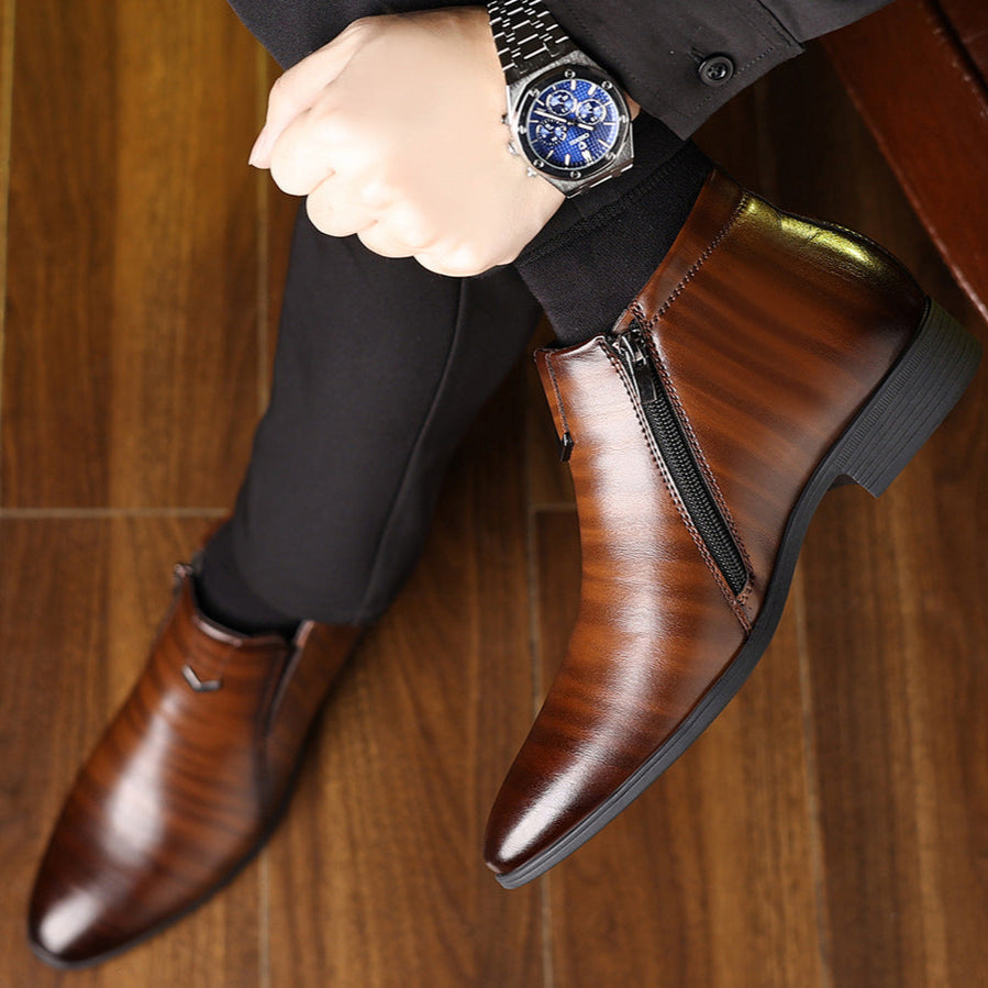 Confectionnées en cuir brillant de haute qualité, ces Bottes en cuir véritable Ferrandi présentent une silhouette lisse et profilée qui apporte sophistication à chaque tenue. La fermeture éclair latérale épurée et le bout pointu offrent une finition soignée, idéale pour des pas assurés et élégants.