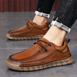 Enfilez les Chaussures en Cuir Véritable Gatsby, où le style rencontre un confort exceptionnel. Avec leur bout mocassin cousu et leur semelle en caoutchouc robuste, elles offrent un soutien fiable et une adhérence tout au long de la journée.