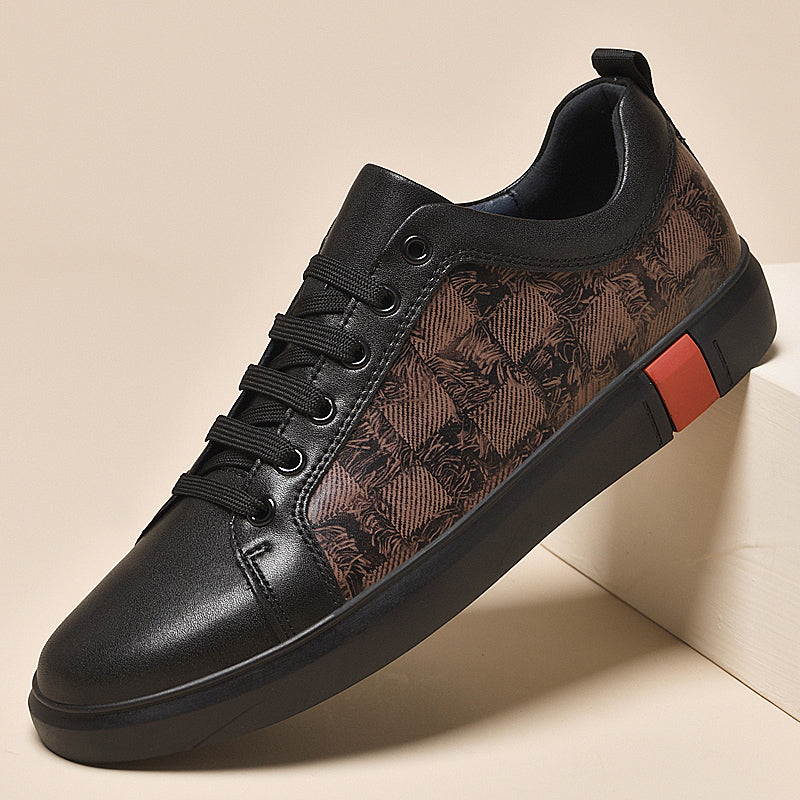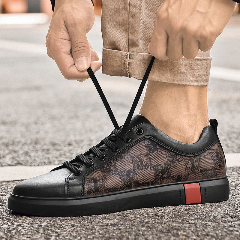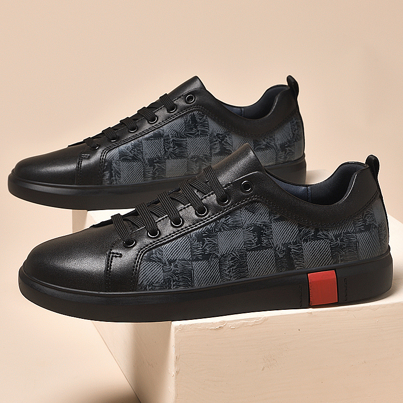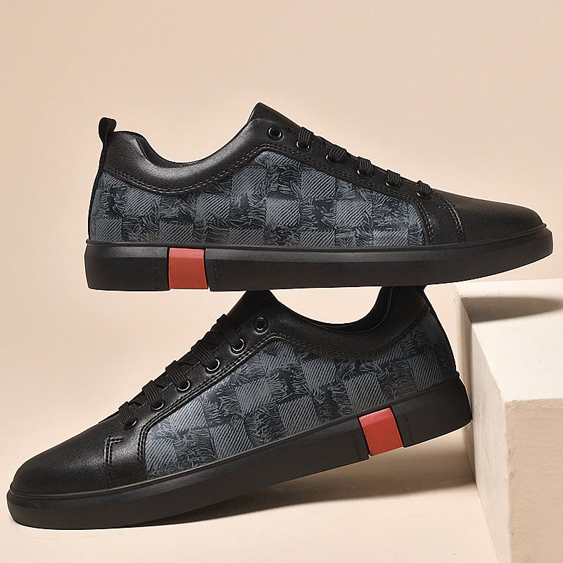 Confectionnées en cuir italien véritable, ces baskets associent une finition mate lisse à des empiècements latéraux à motif damier richement texturé, idéales pour la vie urbaine. Les semelles rembourrées enveloppent vos pieds dans un confort optimal tout au long de la journée.