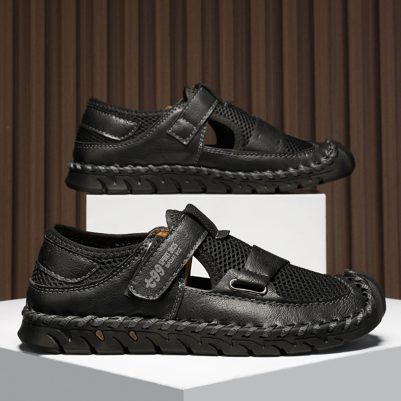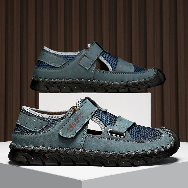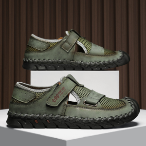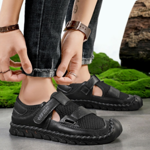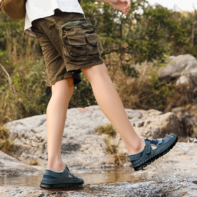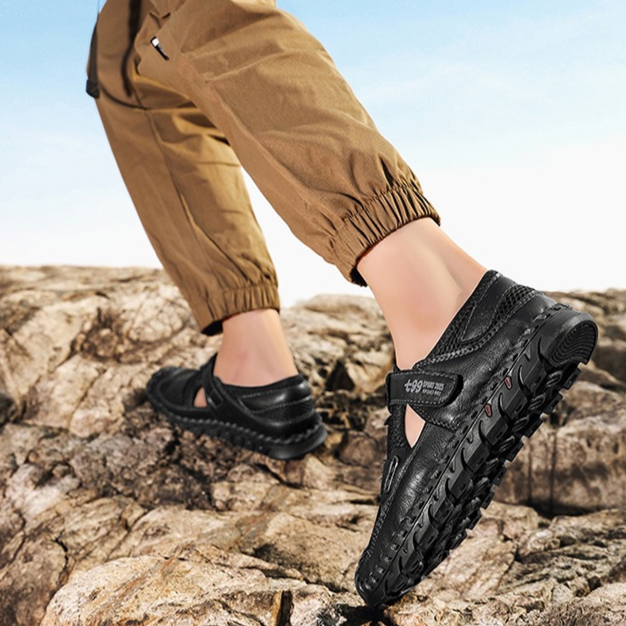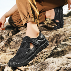 Le cuir véritable rencontre un mesh respirant pour offrir une adhérence optimale tout en assurant un maintien frais et stable. La semelle incurvée et la fermeture rapide par sangle garantissent une foulée fluide et un mouvement sécurisé, que ce soit en ville ou sur les sentiers.