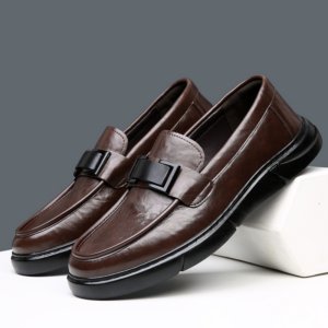 Confectionnés en cuir véritable, ces mocassins offrent un confort inégalé avec une finition lisse et brillante. Leur semelle rembourrée et le détail raffiné de la boucle en métal en font le choix idéal pour ajouter une touche de sophistication à toutes vos tenues, que ce soit pour le travail ou les loisirs.