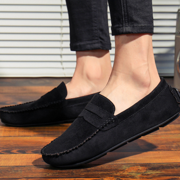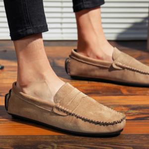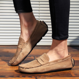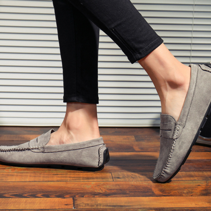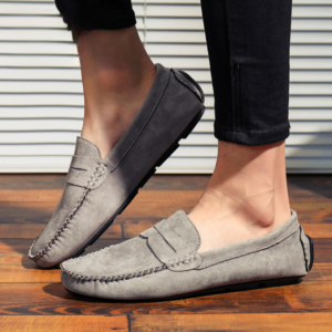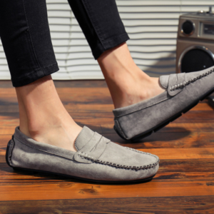 Confectionnés dans un daim de qualité supérieure, ces mocassins à lanière allient confort et polyvalence grâce à une semelle intérieure rembourrée et une semelle souple. Le talon renforcé type “driving” offre une stabilité accrue, que vous arpentiez les rues animées ou que vous soyez au volant.