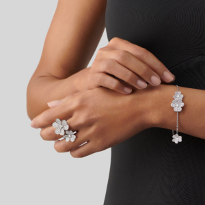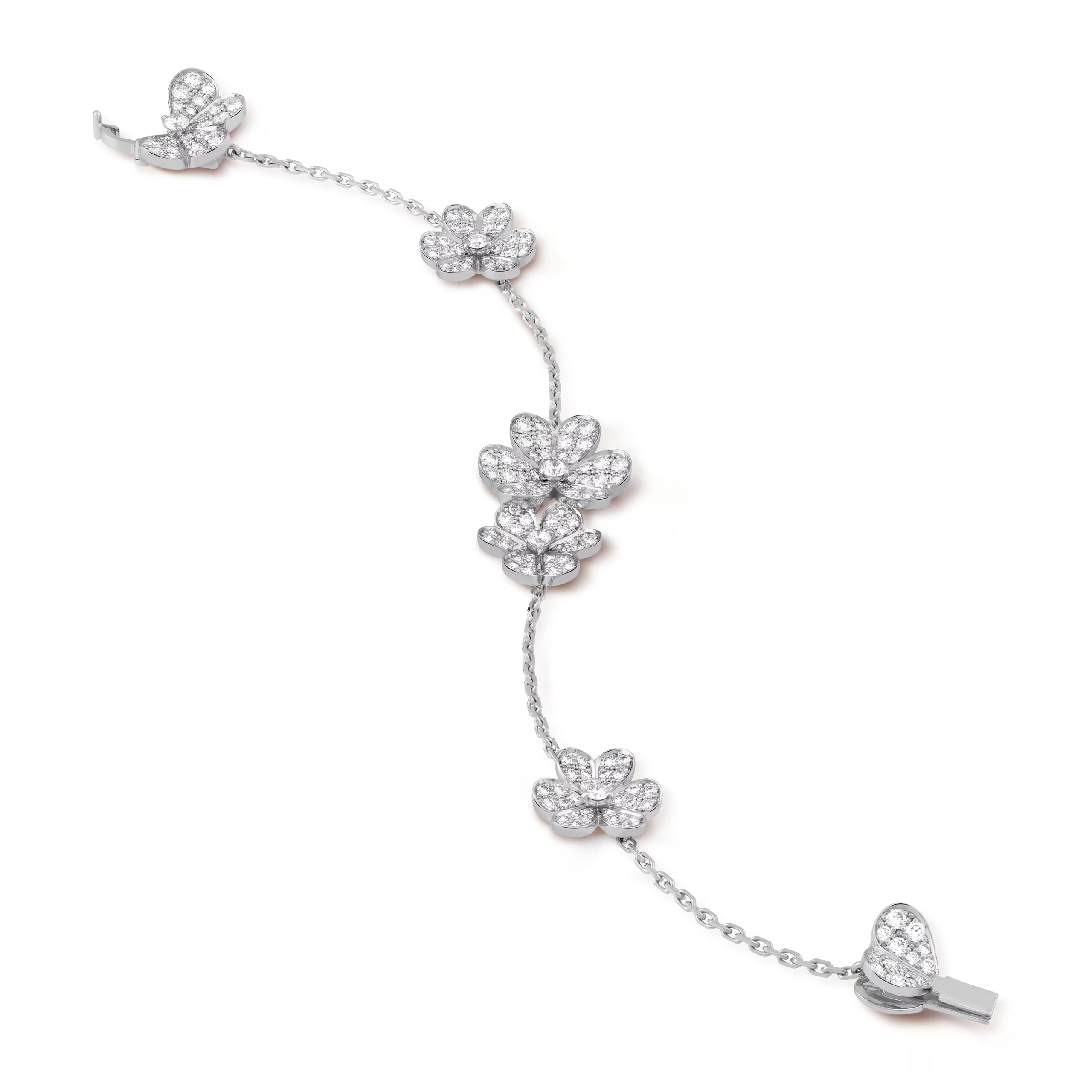 Célébrant la vitalité et la beauté, le bracelet Frivole à cinq fleurs incarne l’esprit du printemps perpétuel. Il devient un compagnon radieux apportant lumière et positivité à chaque instant.