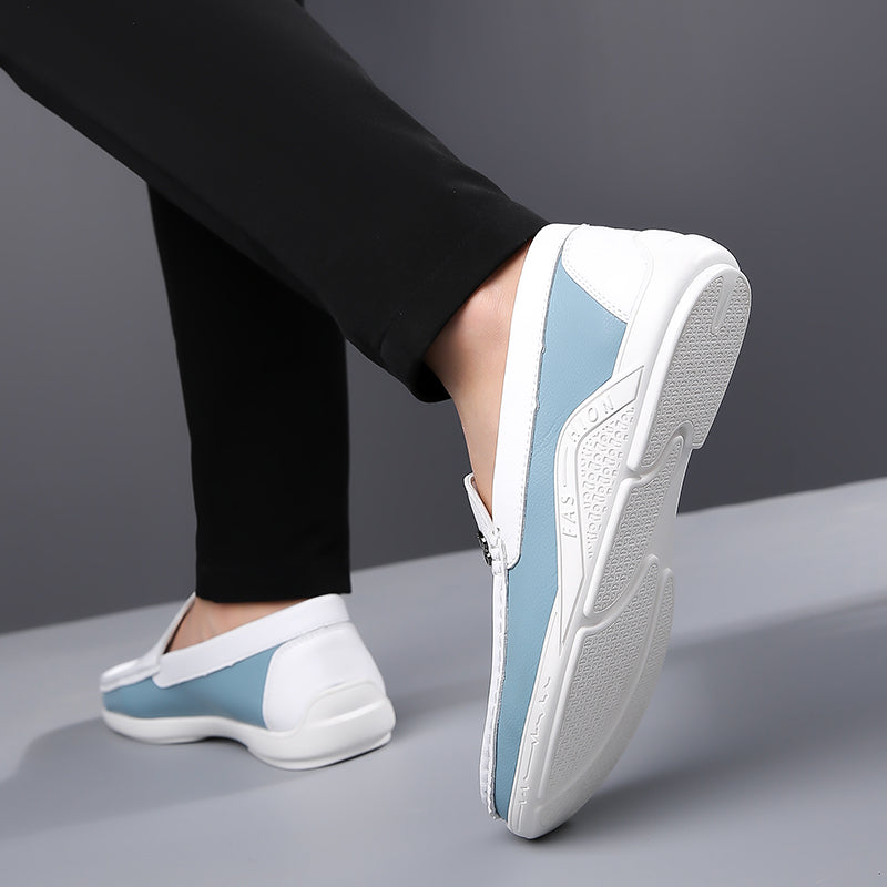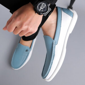 Fabriqué en cuir véritable, ce mocassin unique présente un design bicolore qui apporte élégance et sophistication à votre style. Profitez du confort d’une semelle intérieure rembourrée et d’une semelle extérieure en caoutchouc durable, offrant une adhérence fiable tout au long de la journée.