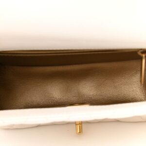 Il s’agit d’un authentique Mini Flap blanc de Chanel. Ce mini sac bandoulière est confectionné en cuir blanc élégant.