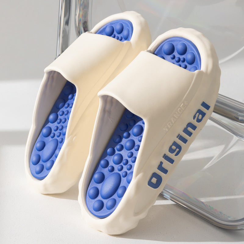 Step into ultimate relaxation with premium EVA slides featuring a cushioned, bubble-textured insole that massages your feet with every step. Lightweight and durable, they provide superior comfort and support, perfect for lounging or post-workout recovery.