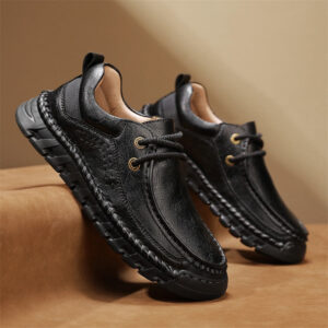 Enfilez les Chaussures en Cuir Véritable Gatsby, où le style rencontre un confort exceptionnel. Avec leur bout mocassin cousu et leur semelle en caoutchouc robuste, elles offrent un soutien fiable et une adhérence tout au long de la journée.