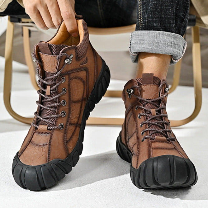 Ces Bottes d’extérieur Malcolm affichent un extérieur robuste tout en offrant un intérieur incroyablement doux. Doublées d’un tissu respirant et confortable, elles gardent vos pieds à l’aise, que vous arpentiez la ville ou exploriez la nature. La semelle intérieure rembourrée apporte le soutien nécessaire, tandis que le col de cheville rembourré assure un maintien sûr et confortable.
