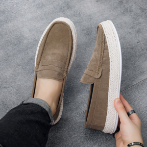 Confectionnés en daim souple, ces mocassins offrent un confort respirant et une structure flexible qui accompagne naturellement chacun de vos pas. La semelle tressée en corde apporte un amorti léger et une bonne adhérence, faisant de ces chaussures votre choix idéal pour de courtes promenades ou de longs déjeuners du week-end.