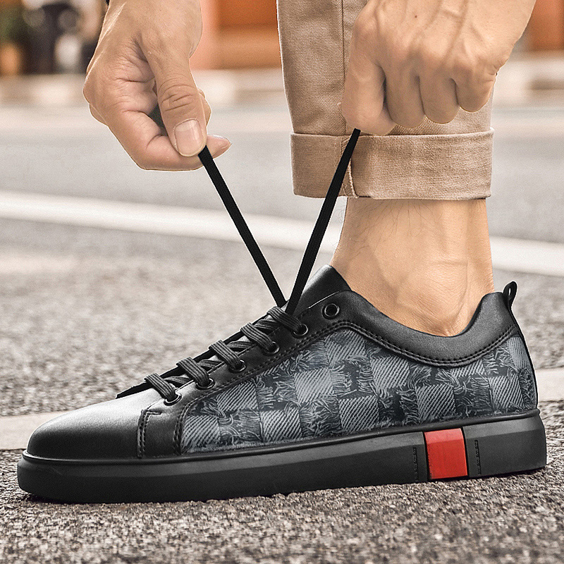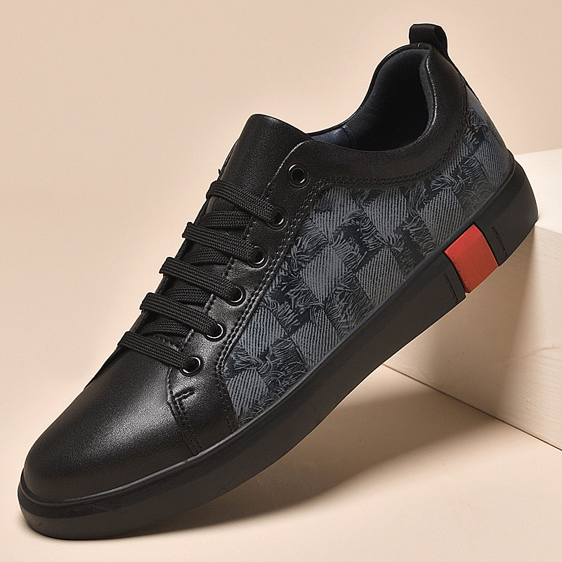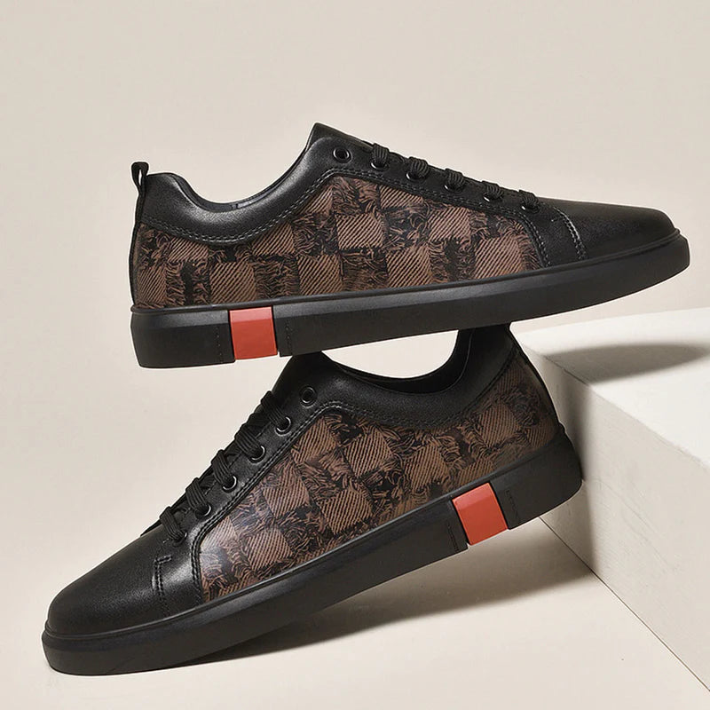 Confectionnées en cuir italien véritable, ces baskets associent une finition mate lisse à des empiècements latéraux à motif damier richement texturé, idéales pour la vie urbaine. Les semelles rembourrées enveloppent vos pieds dans un confort optimal tout au long de la journée.