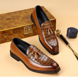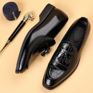 Look soigné, profil épuré, assurance naturelle — ces mocassins attirent les regards à chaque pas. Confectionnés en cuir véritable avec un empeigne à texture crocodile et une élégante finition à pampilles, ils offrent un style raffiné et habillé, adapté à toutes les occasions.